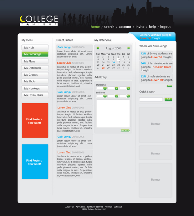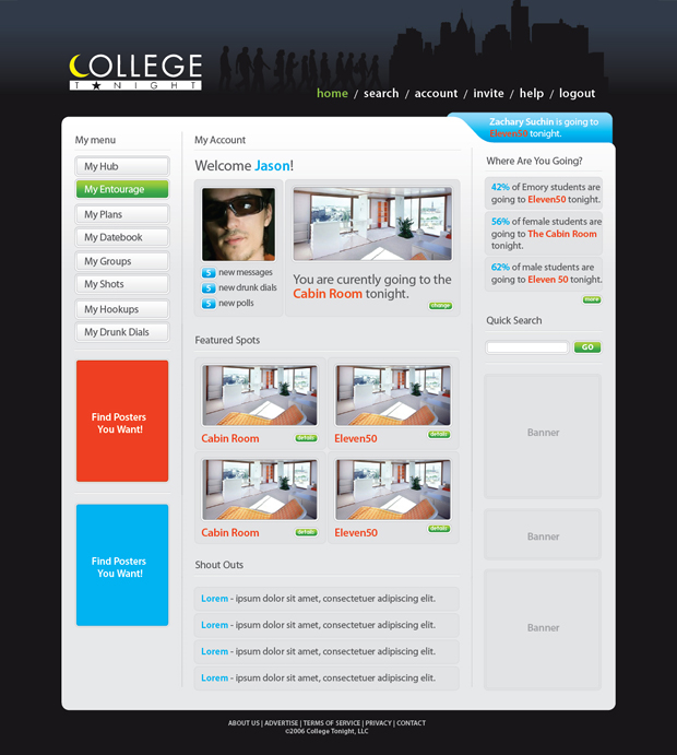 Social networking service for US college students, graduate students, and alumni, focused on nightlife events and social opportunities on and near college campuses.