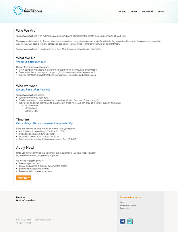 TomorrowInnovations is an extensible program incubating global talent in order to create the next generation of start-ups.