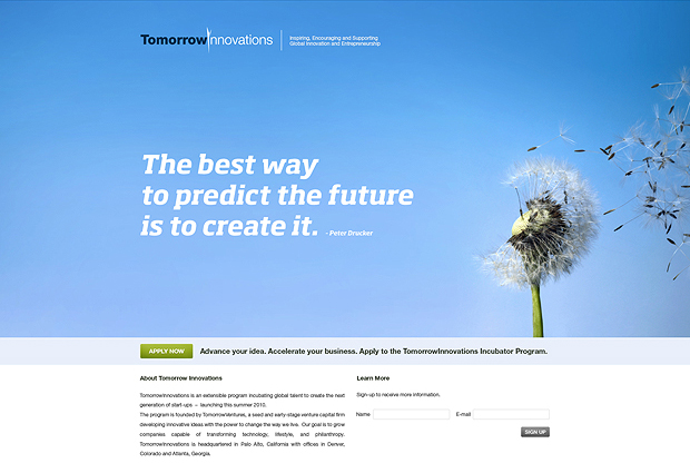 The program is founded by TomorrowVentures, a hybrid, opportunistic venture capital firm developing innovative ideas with the power to change the way we live.