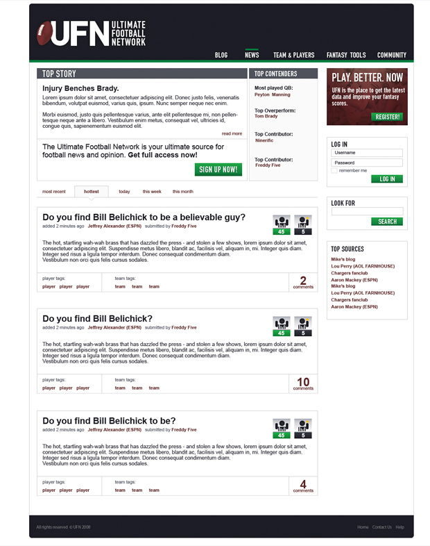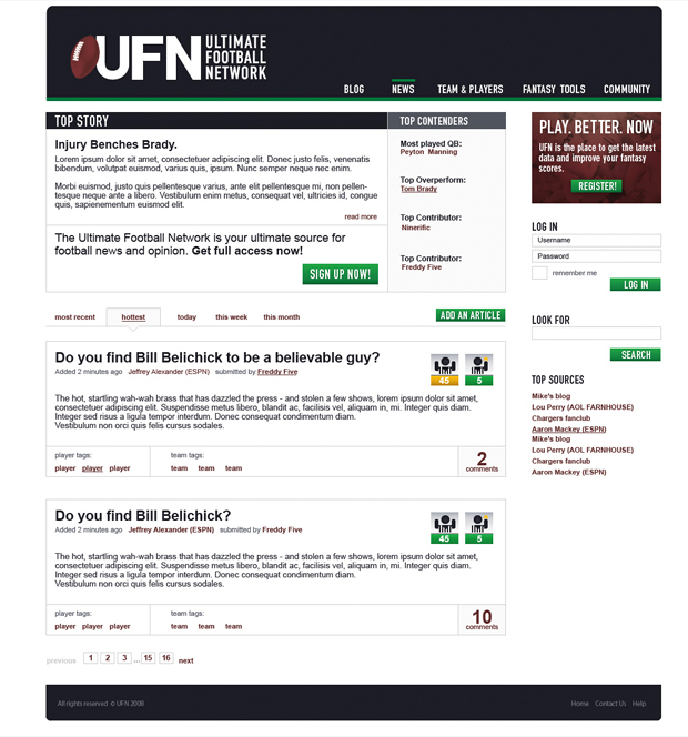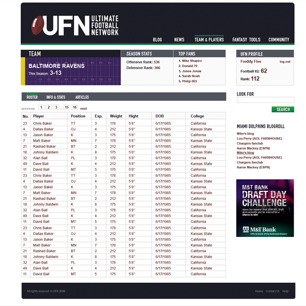 We were involved with building the identity for the project as well as the user interface design within guidelines of professionalism, simplicity, and modernity. The identity provides cohesive branding while supporting a user experience that creates loyalty and encourages repeated visits from loyal football fans.