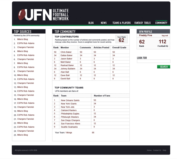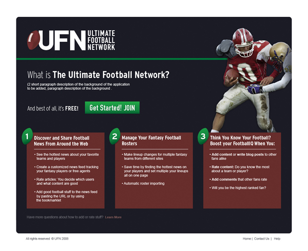The fantasy football application within the site will help fans manage their fantasy football teams from other leagues, and allow them to complete against other UFN fans as well.