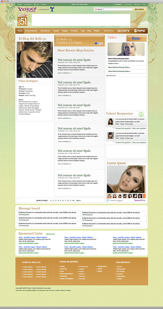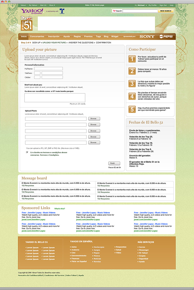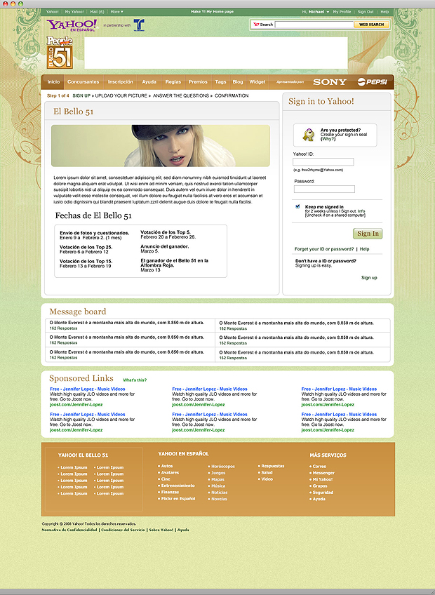 On the microsite the users can vote and/or submit several pictures and personal info in order to be elected the 51st Most Beautiful Hispanic Person in 2009, featured on “People en Español” Magazine as well as on selected TV shows.