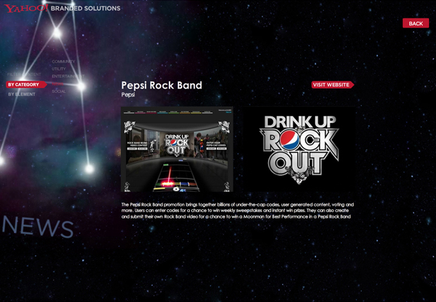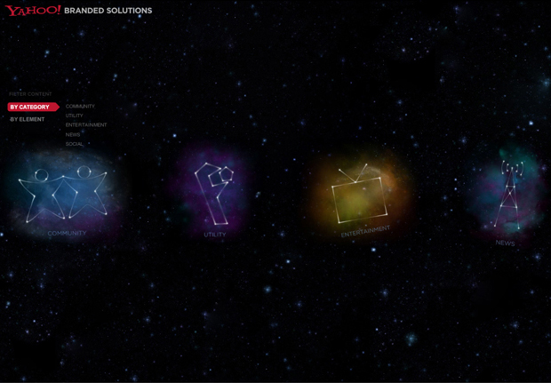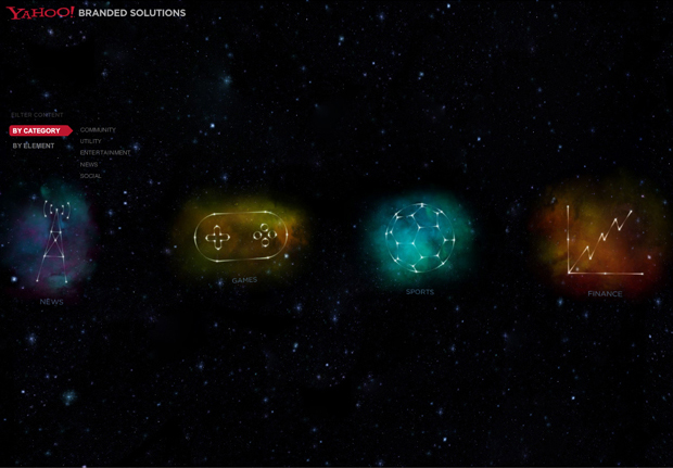The Yahoo Custom Solution site is an interactive experience in itself. It represents the universe of solutions that Yahoo can provide for brands.