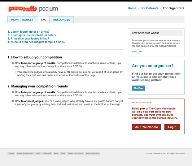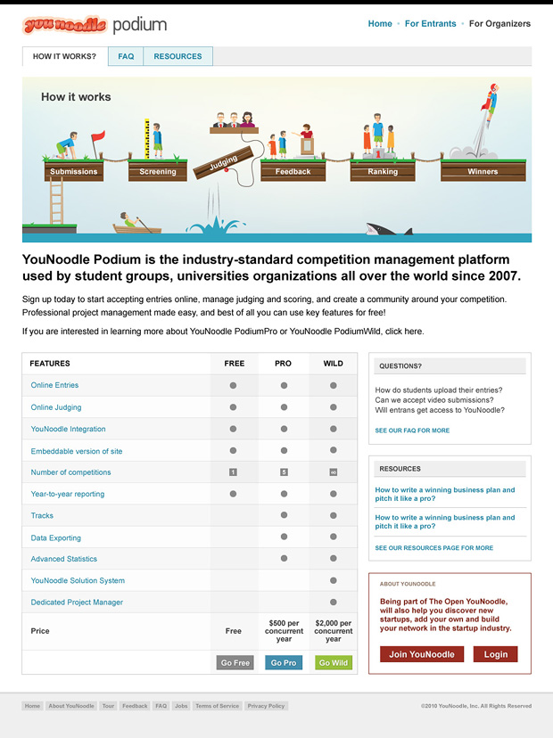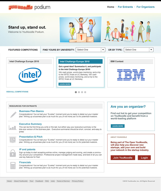 The Podium is an important extension on the Younoodle site, where applicants can browse start-up and innovation contests organized by various companies or universities.
